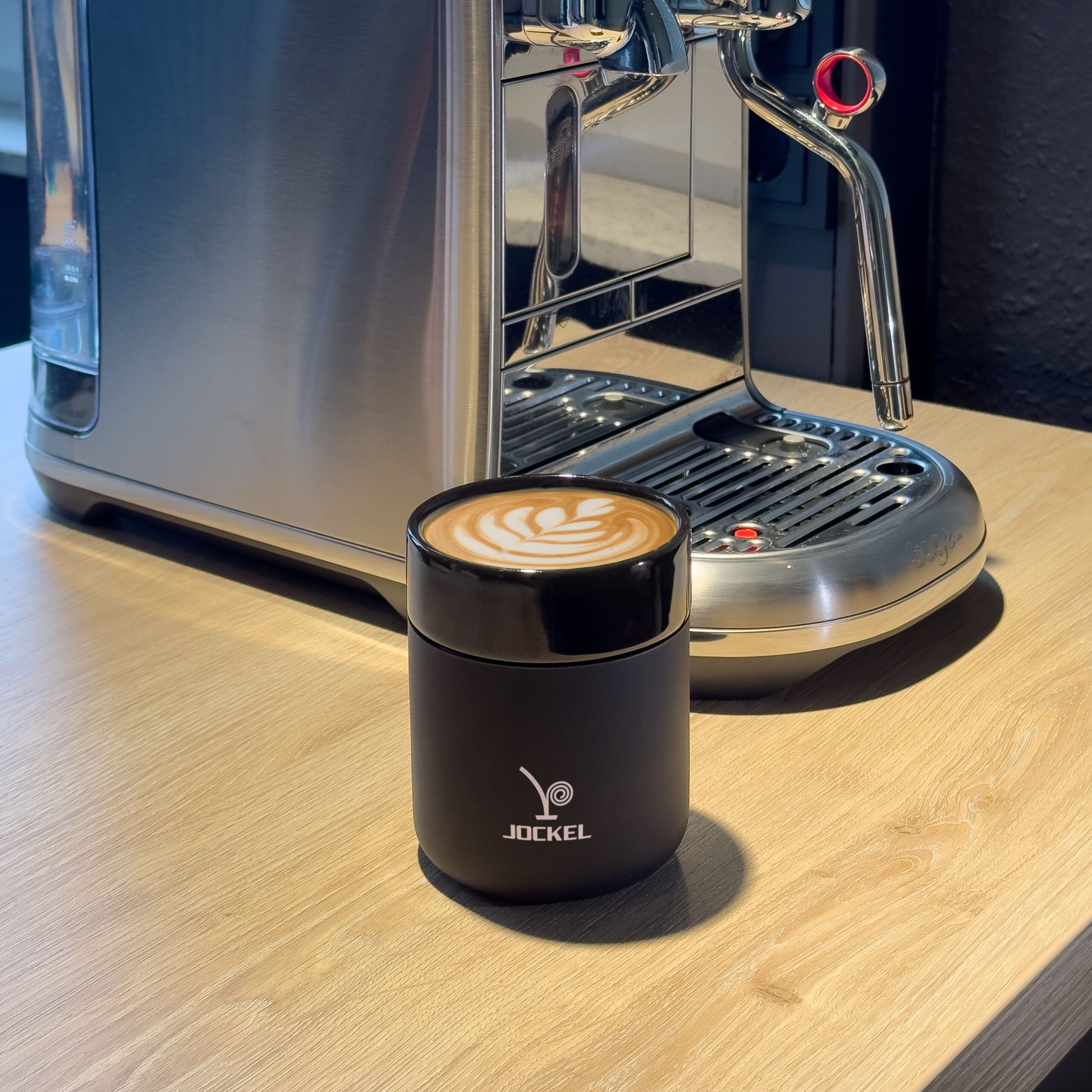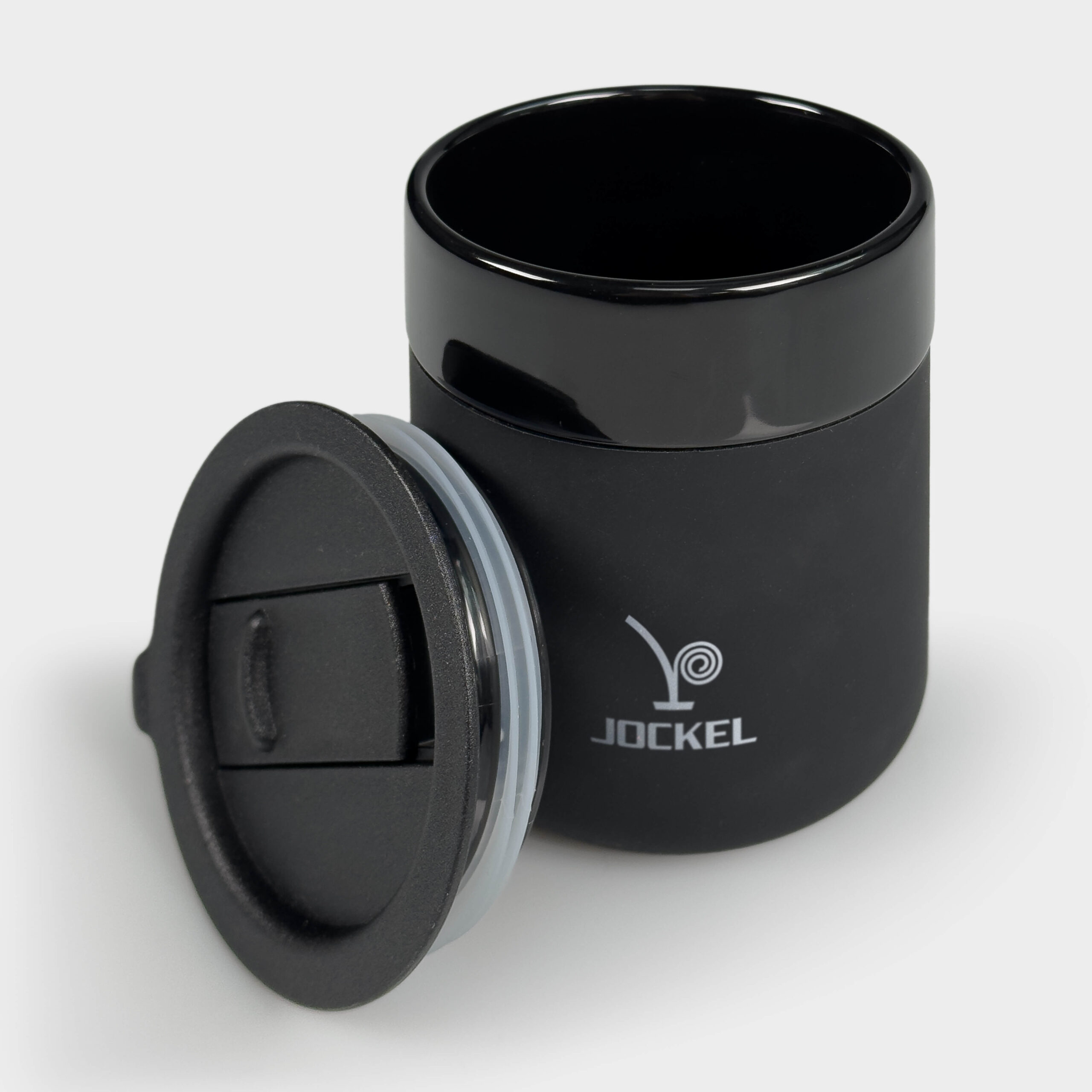 Der JOCKEL-Kaffeebecher mit schwarzer Silikonhülle vereint Stil und Funktionalität. Die Hülle schützt vor Hitze und Stößen und sorgt gleichzeitig für einen sicheren Griff. Ein dezenter Logo-Aufdruck auf dem Silikon rundet das Design ab. Der Keramikbecher ist spülmaschinengeeignet und wird mit einem praktischen Deckel geliefert. Mit insgesamt 0,33 l Fassungsvermögen ist er vielseitig einsetzbar, sowohl als klassische Tasse als auch für unterwegs.