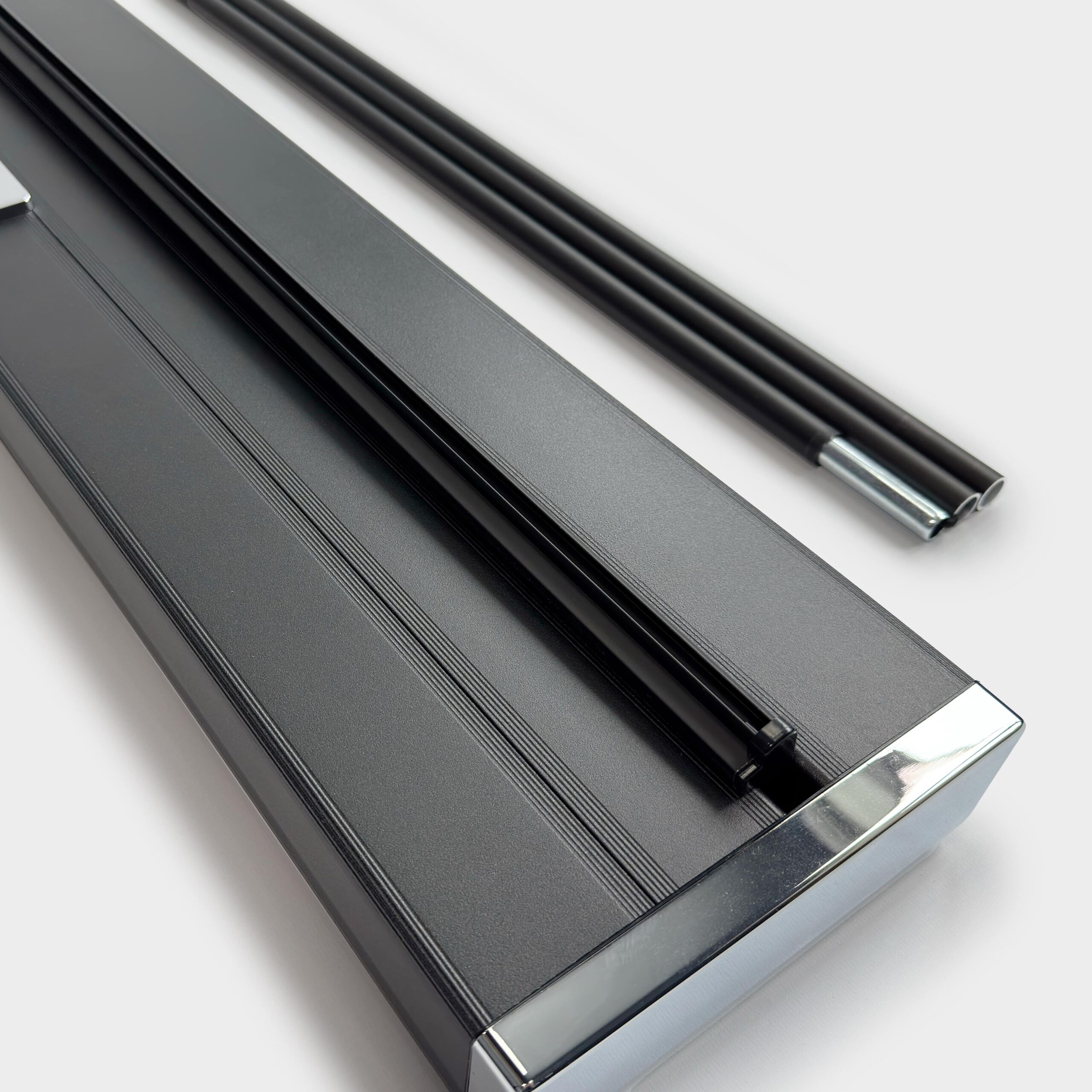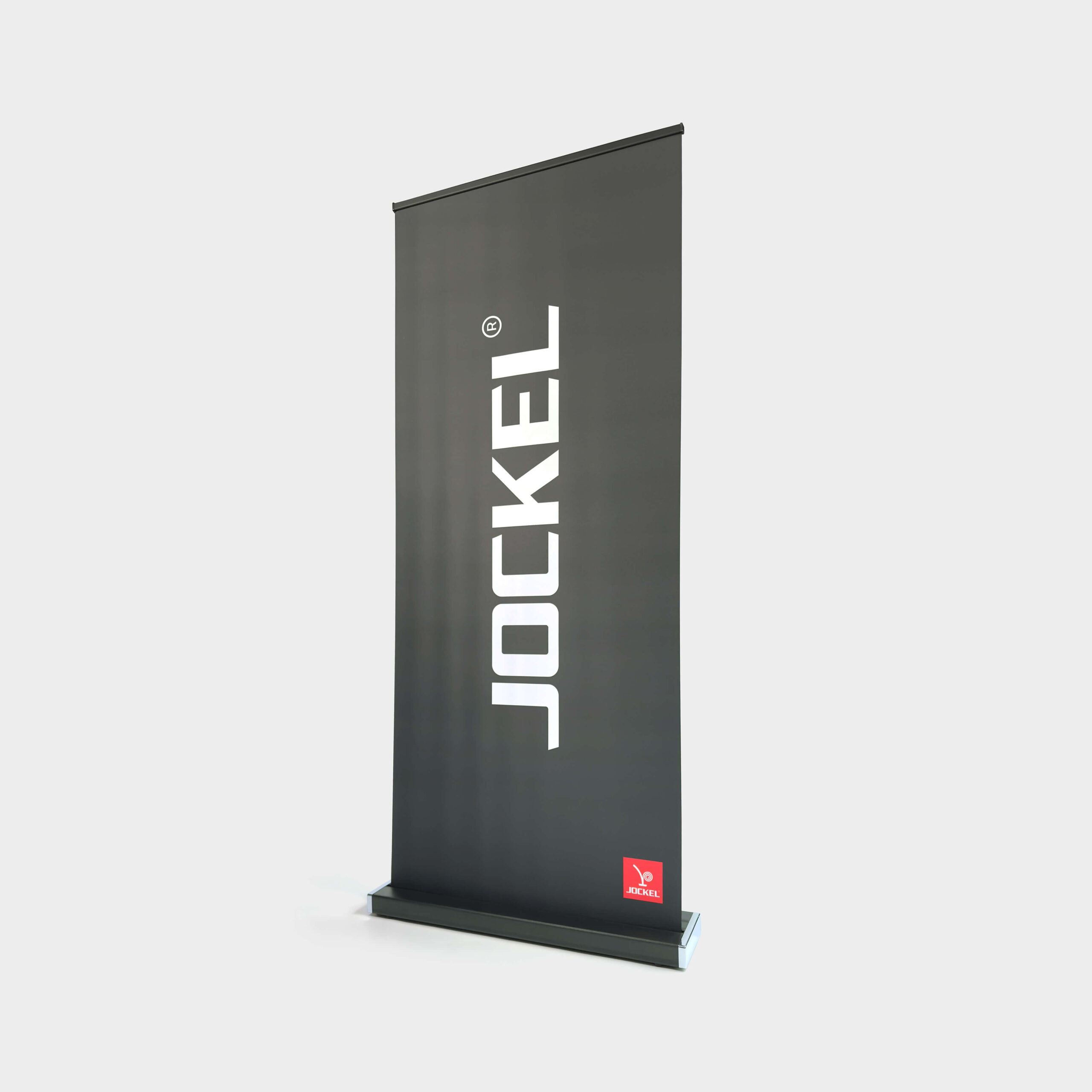 Das JOCKEL Roll-Up Premium überzeugt durch sein schlichtes, elegantes Design und die hochwertig verarbeitete Kassette im edlen Schwarz. Ideal für einen professionellen Auftritt auf Messen, in Showrooms, Verkaufsräumen oder im eigenen Firmengebäude. Das System ist stabil, langlebig und in wenigen Handgriffen aufgebaut. Für den sicheren Transport wird das Roll-up in einer praktischen Tragetasche geliefert – Qualität und Stil bis ins Detail.